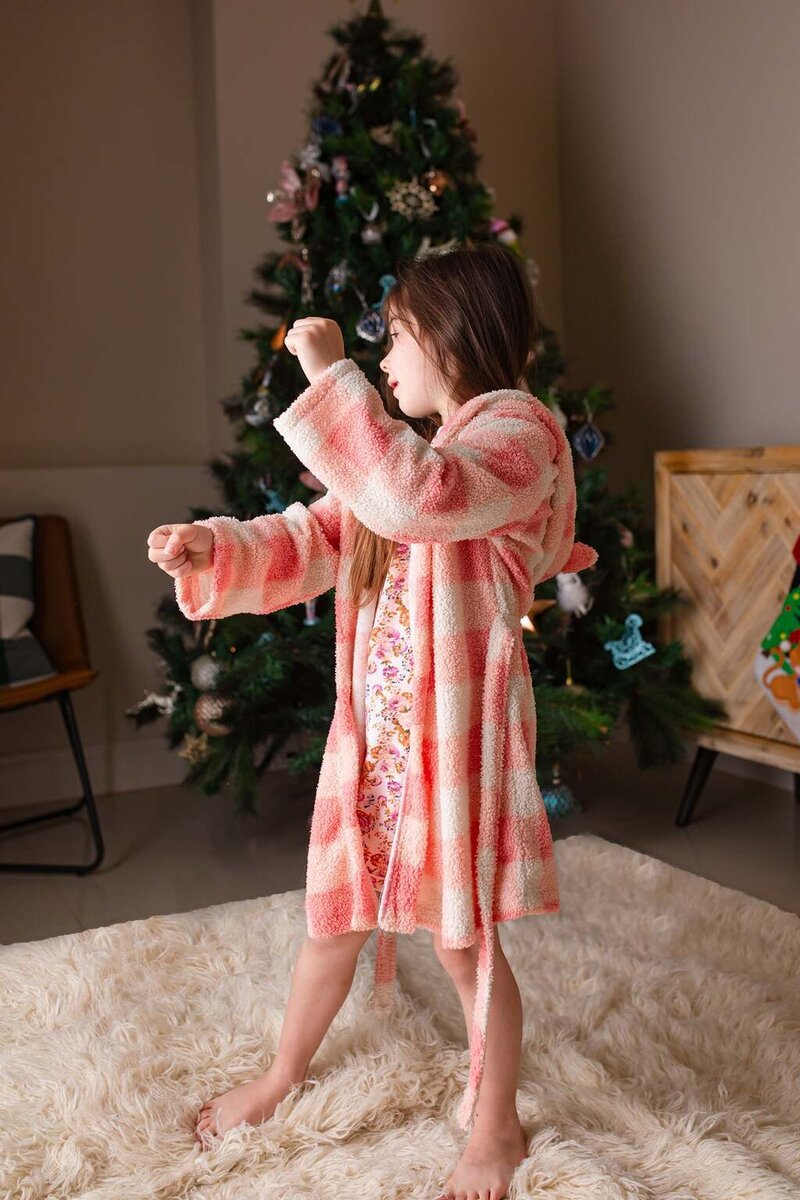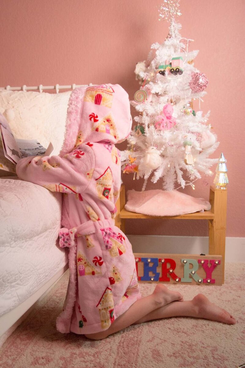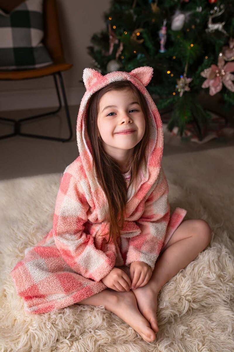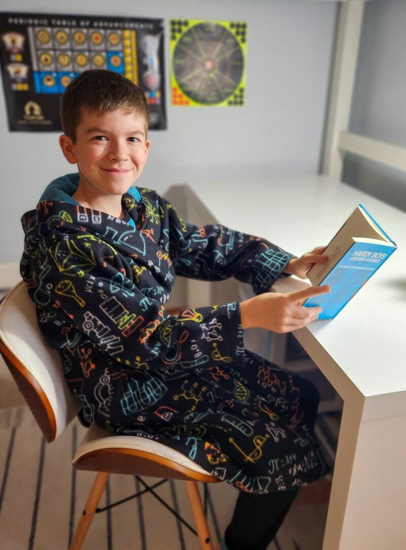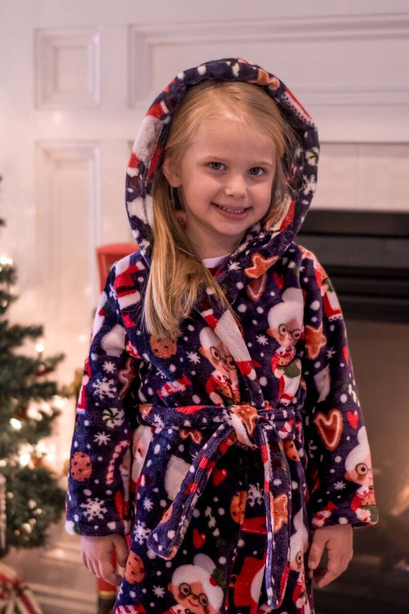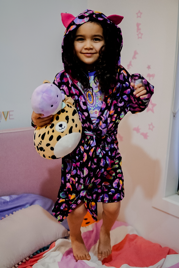 Cocoa is a cuddly, hooded robe designed for woven or knit fabrics with an elasticated back waist and sewn in ties. Add some ears to the hood for a fun look!